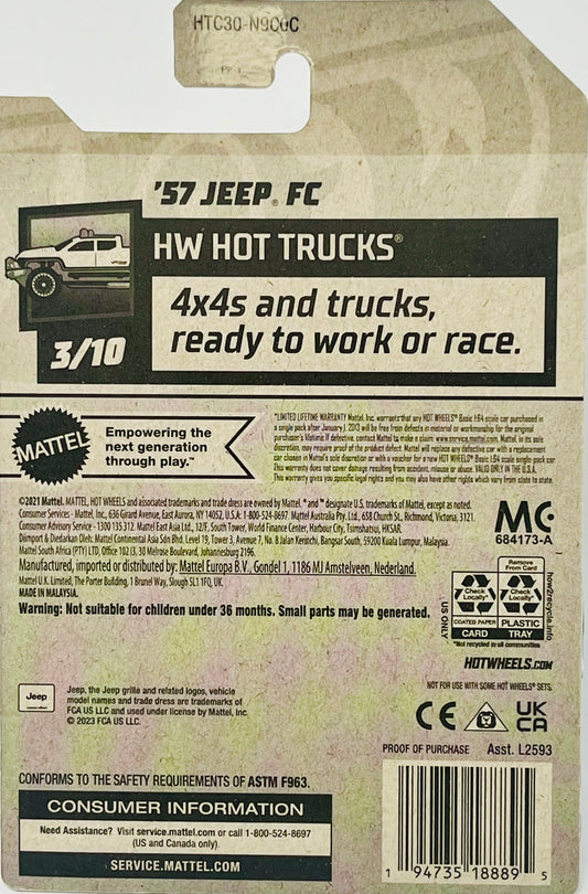 2 X Hot Wheels '57 Jeep FC Khaki- Hot Trucks Series 3/10