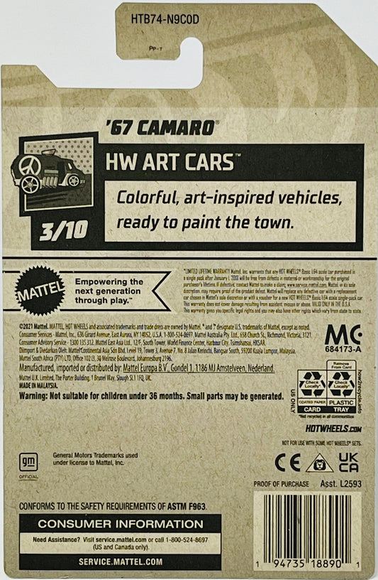 2 x 2024 Hot Wheels 1967 Camaro Blue HW Art Cars Mattel Toy Car Vehicle