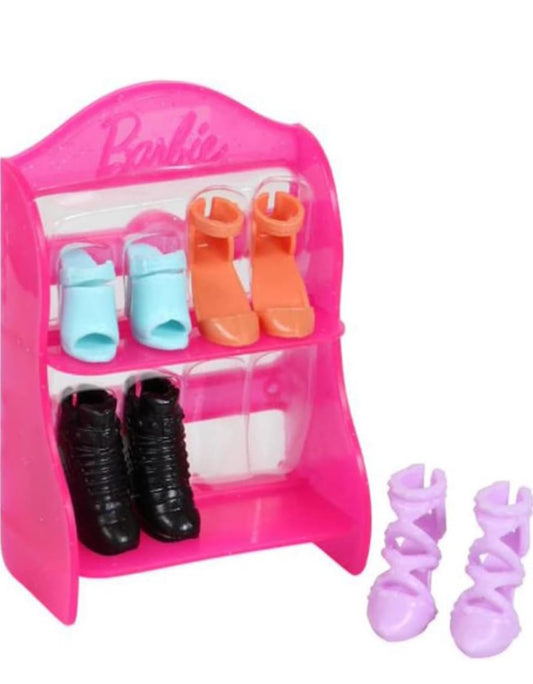 Barbie Doll Shoe Pack Includes 4 Pairs of Doll Shoes with Shoerack - Blue, Orange and Purple Heels with Black Boots