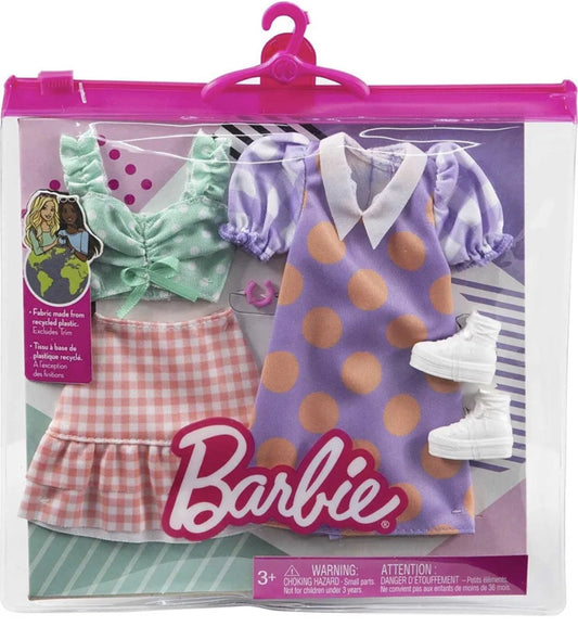 Barbie Fashion Pack Polka Dot Crop Top and Dress with Plaid Skirt and Shoes