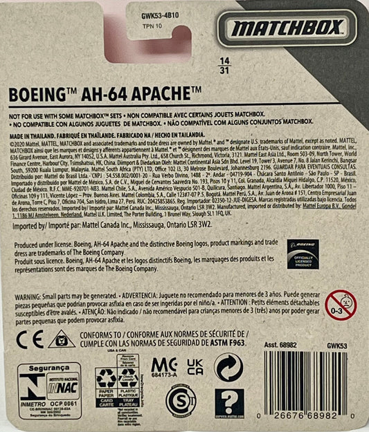 Matchbox Sky Busters BOEING AH-64 APACHE Helicopter 14/31 Army Gray