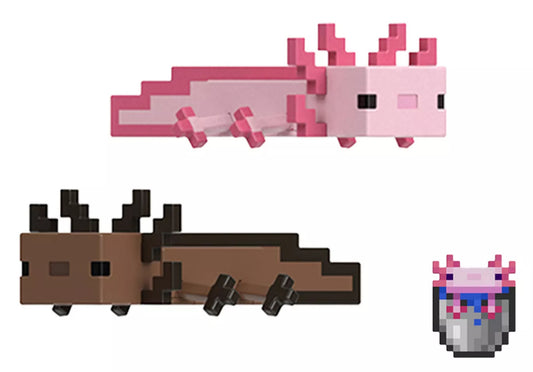 Mattel Minecraft Axolotl Pair Action Figures & Mini Axolotl Pail 3-Piece Set