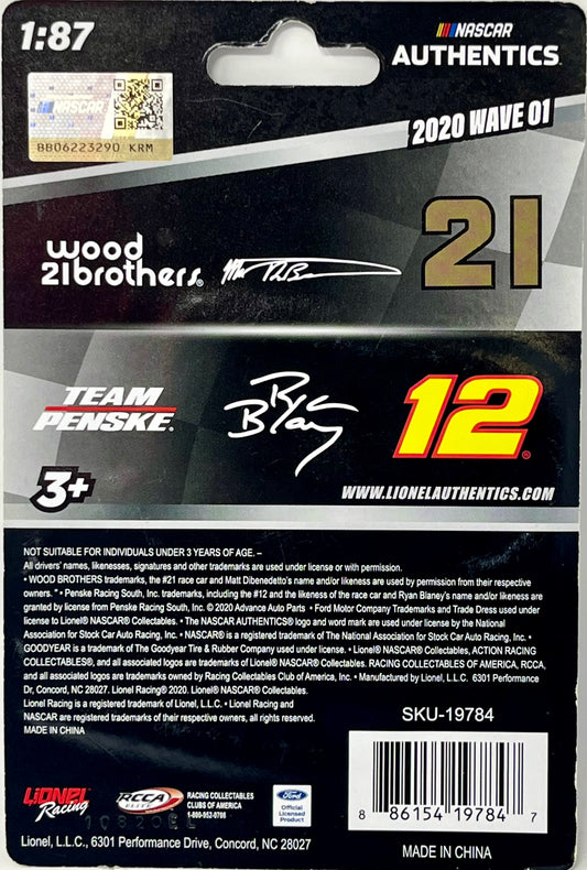 Nascar Authentics RYAN BLANEY Advance Same Day 1:64 2021 Wave 12 Lionel