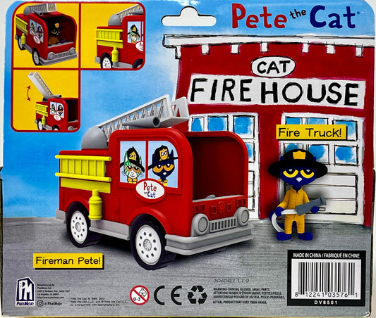 Pete the Cat Action Figure Set Firefighter with Fire Truck Firehouse Ladder Hose