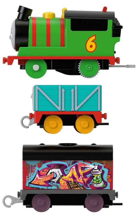 Thomas & Friends Graffiti Percy Motorized Toy Train Play Vehicle Engine with Cargo Cars