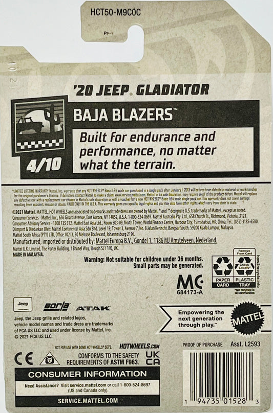2022 Hot Wheels '20 Jeep Gladiator 26/250 HW Baja Blazers 4/10 Black