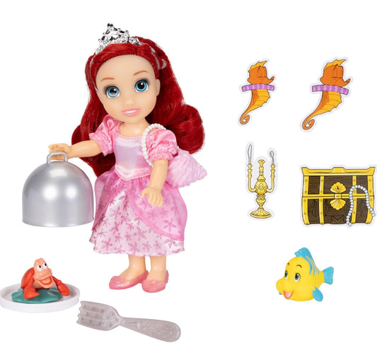 Disney Princess Ariel Doll Sea to Land Petite Ariel Doll with Sebastian & Flounder, in Mermaid Tail and Pink Dress Fashions