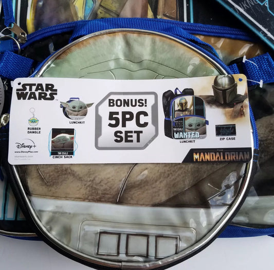 Disney Star Wars Mandalorian 5 Pcs Backpack Baby Yoda Grogu Lunch Pk Pencil Bag