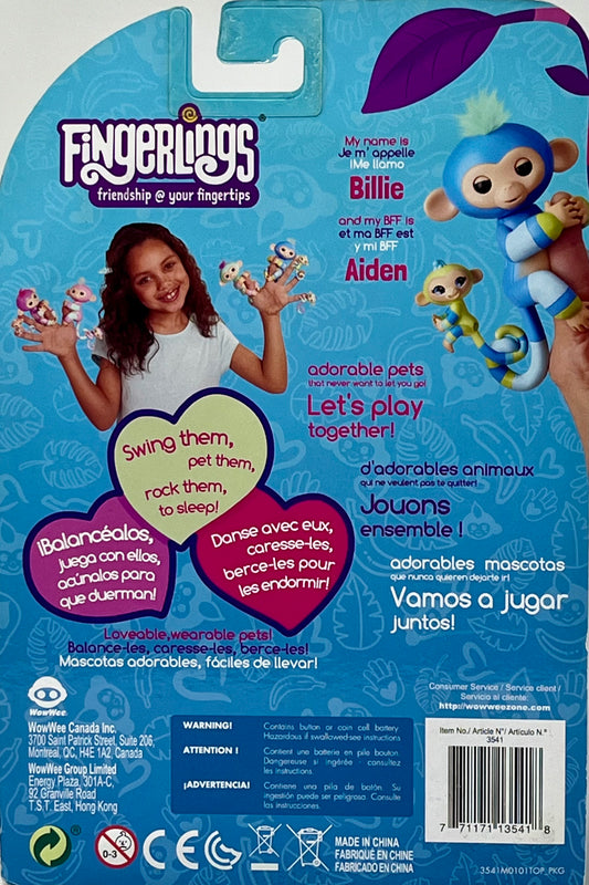 Fingerlings Toy BFF Collection Billie & Aiden Mini Baby Monkey Blue