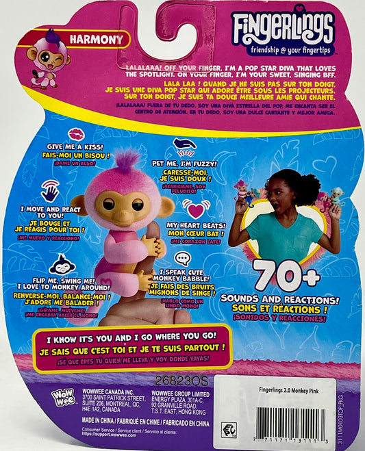 Fingerlings 2023 New Interactive Baby Monkey Reacts to Touch – 70+ Sounds & Reactions – Harmony (Pink)