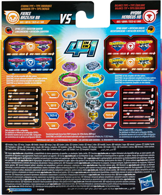 eyblade Burst QuadStrike Fierce Bazilisk B8 and Hydra Kerbeus K8 Spinning Top Dual Pack, 2 Battling Game Top Toy for Kids Ages 8 and Up