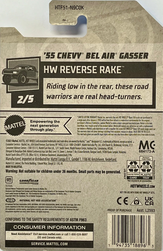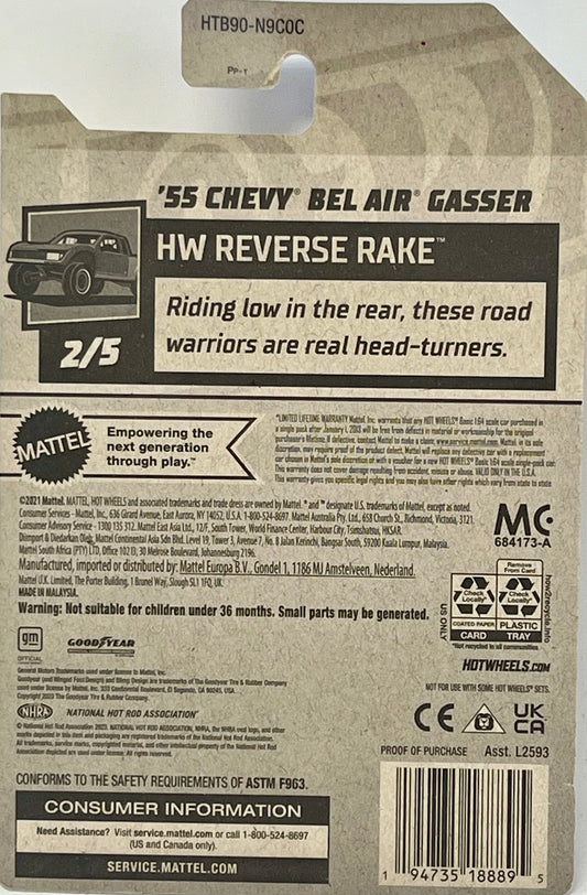 Hot Wheels '55 Chevy Bel Air Gasser, HW Reverse Rake 2/5 [Pearl Orange] 63/250