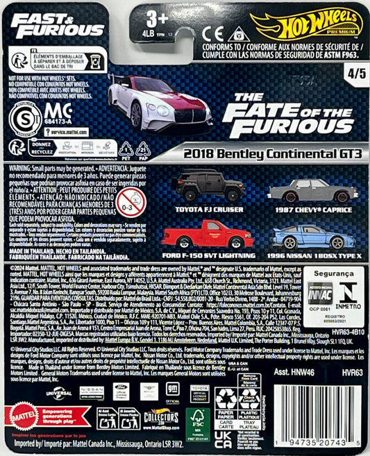 Hot Wheels 2018 Bentley Continental GT3 Premium Fast & Furious 1:64 Scale Die-Cast Car for Collectors