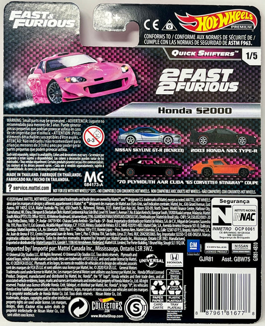 Hot Wheels 2020 Premium Fast & Furious Quick Shifters 1/5 Honda S2000 (Pink)