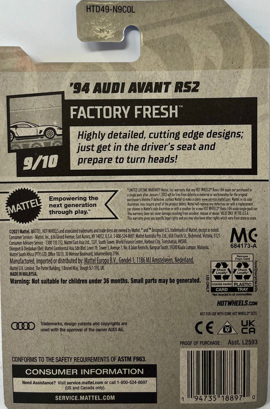 Hot Wheels 2024 Turquoise Teal '94 Audi Avant RS2 # 133/250 Factory Fresh # 9/10