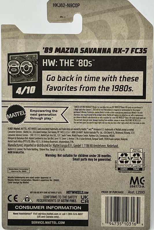 3X Hot Wheels 89 Mazda Savanna RX-7 FC35 Black The 80s #51 Mainline