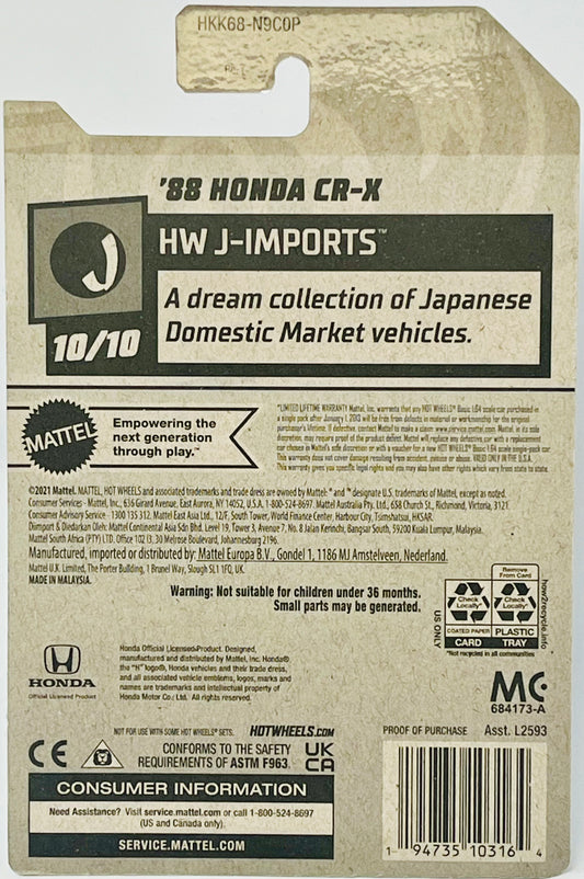 3X #148 Hot Wheels `88 Honda CR-X HW J-Imports