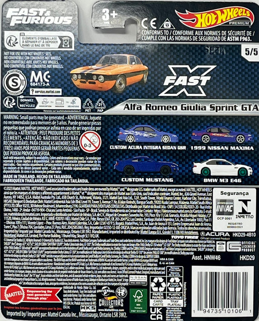 Hot Wheels Fast and Furious - Alfa Romeo Julia Sprint GTA [3 Years Old and Up]