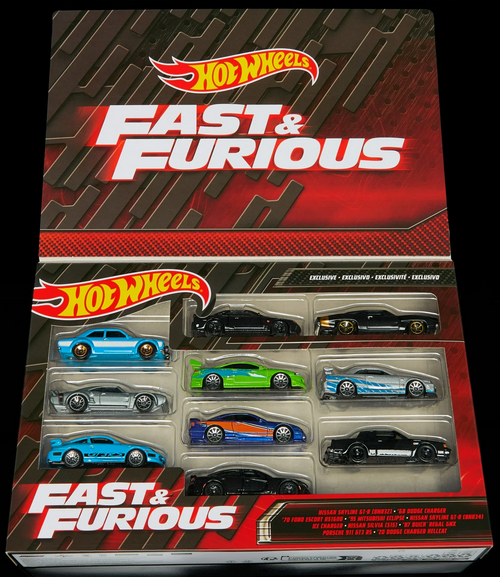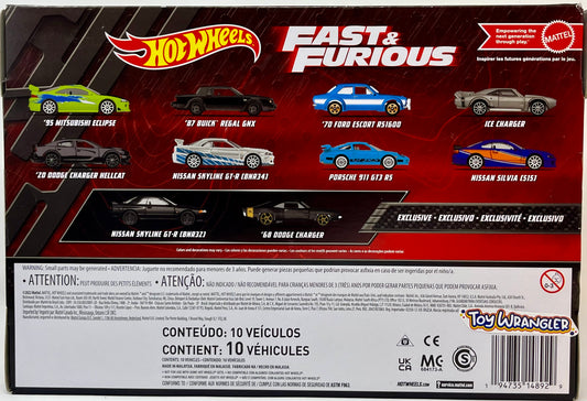 Hot Wheels Fast & Furious Set of 10 Vehicles in 1:64 Scale with 2 Exclusive Cars