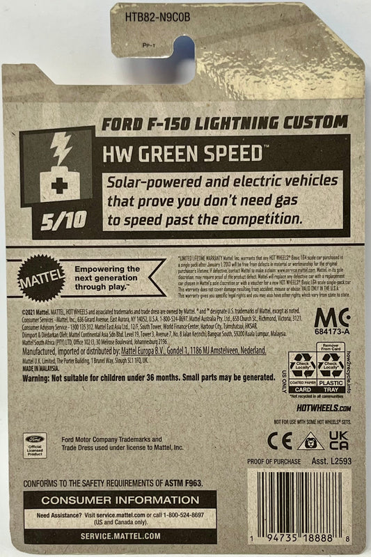 Hot Wheels Ford F-150 Lightning Custom 37/250 HW Green Speed 5/10