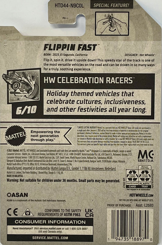 Hot Wheels Flipping Fast Green/Yellow 103/250 HW CELEBRATION RACERS 6/10 Autistic Self Advocacy Network