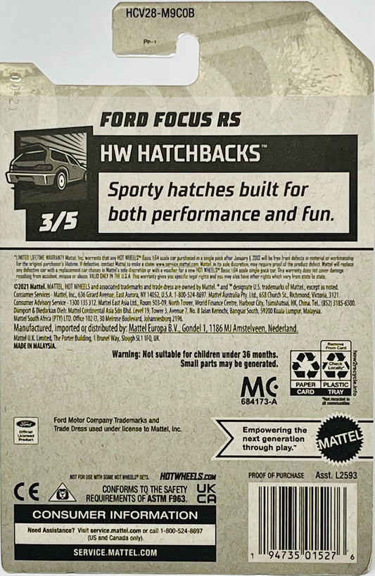 Hot Wheels Ford Focus RS Blue 41/250 HW Hatchbacks 3/5