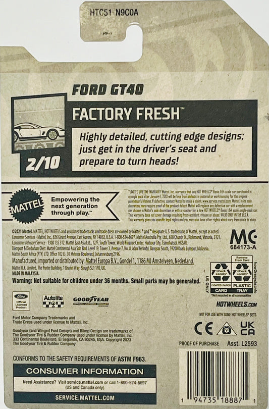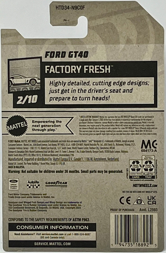 Hot Wheels Ford GT40 (White/Black) Factory Fresh with Protector