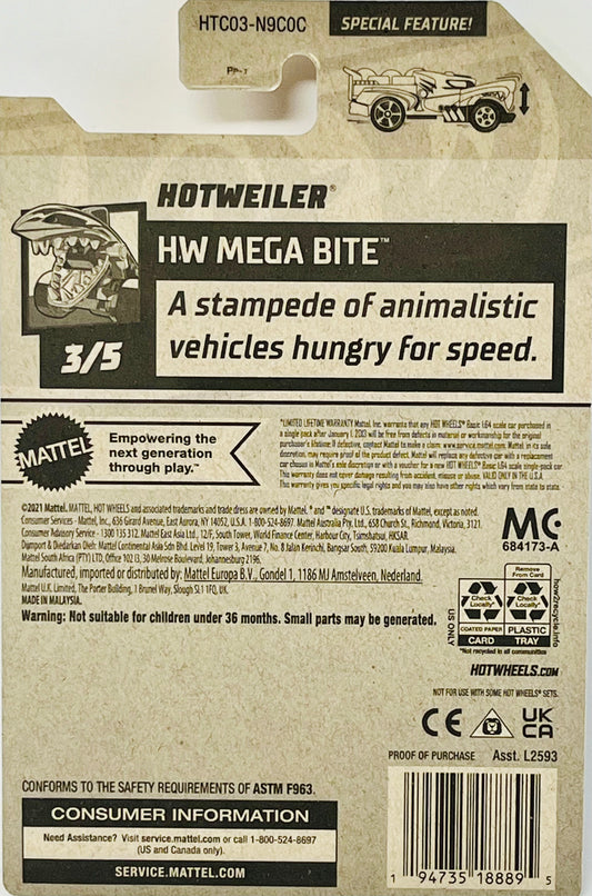 Hot Wheels Hotweiler Light-blue 66/250 HW Mega Bite 3/5 Special Feature Netflix Let’s Race