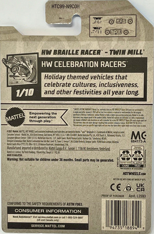 Hot Wheels HW Braille Racer - Twin Mill (Green) Experimotors