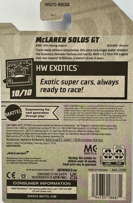 Hot Wheels HW Exotics Mclaren Solust GT White 250/250 HW EXOTICS 10/10