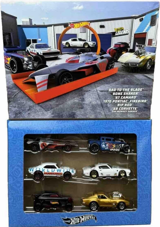 Hot Wheels Legends 6 Pk Corvette, Camaro, Firebird, Bone Shaker & Rip Rod
