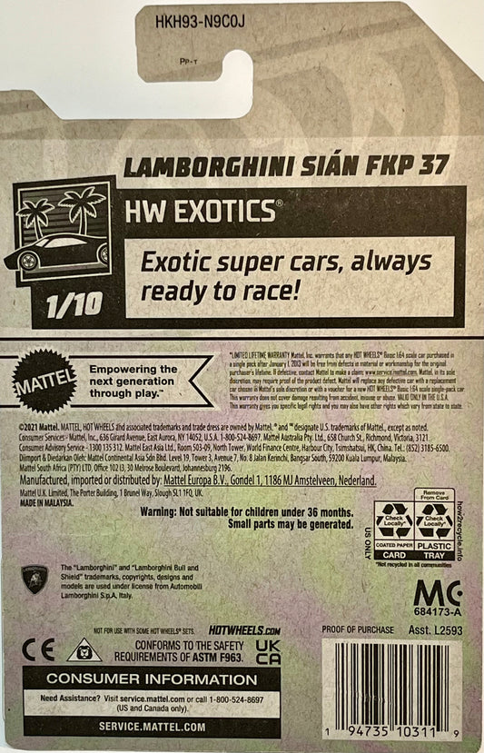 Hot Wheels Lamborghini Sian FKP 37 (Orange) with Protector
