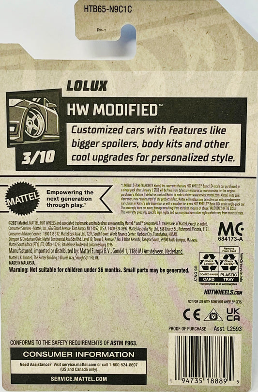 Hot Wheels Lolux Orange Netflix Let’s Race 28/250 HW Modified 3/10