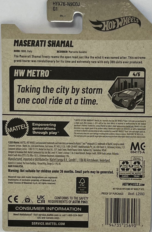 Hot Wheels MASERATI SHAMAL Black 58/250 HW Metro 4/5