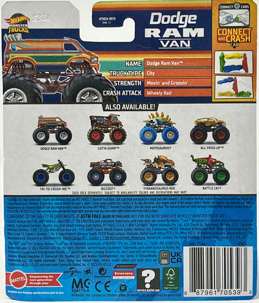 Hot Wheels Monster Truck Dodge Ram Van 1:64 Crash Legends 1/6