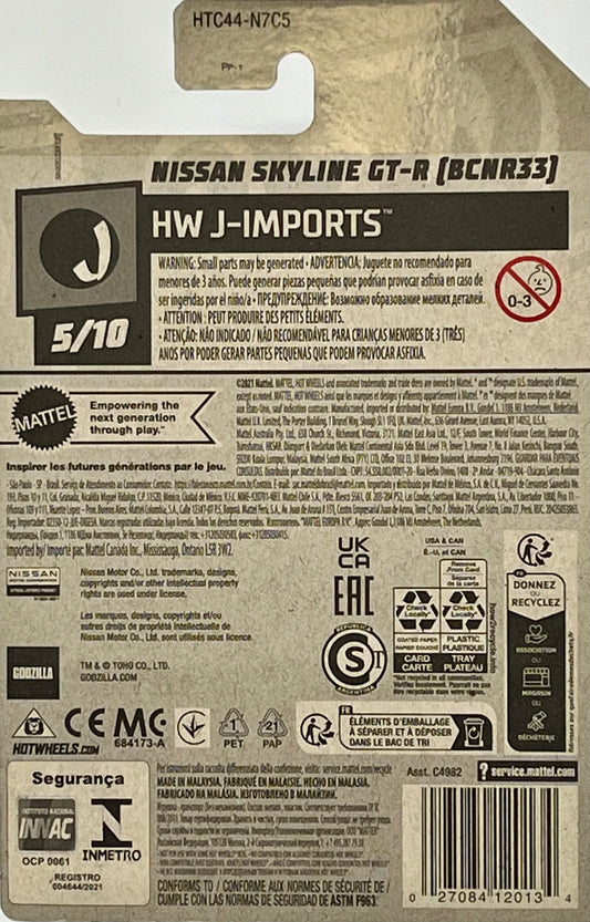 Hot Wheels Nissan Skyline GT-R (BCNR33) Godzilla 5/10 HW-J Imports 86/250 Ships with Protector