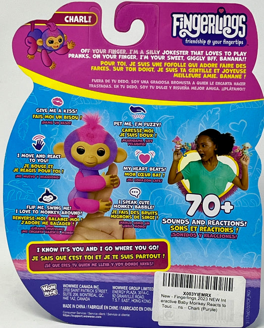Interactive Baby Monkey Reacts to Touch – 70+ Sounds & Reactions – Charli (Purple)