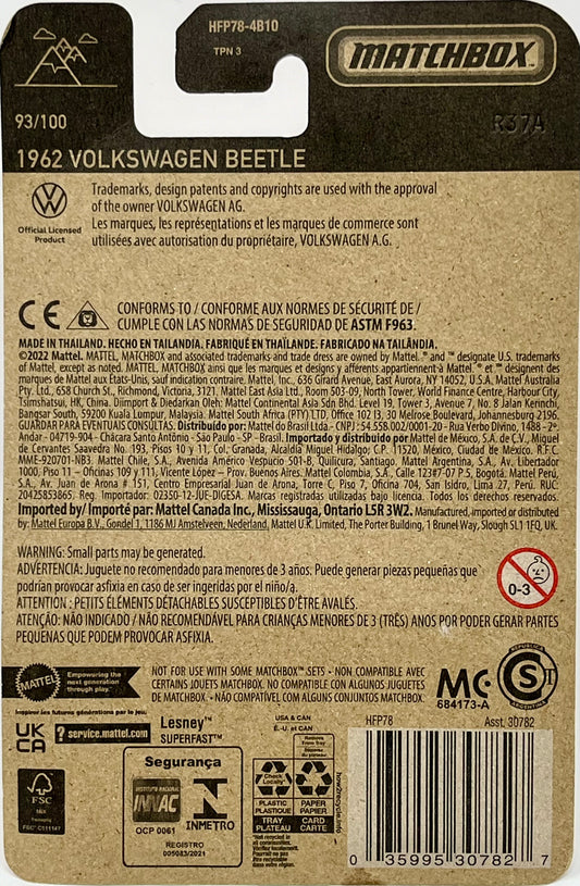 Matchbox 1962 Volkswagen Beetle (Green) 92/100