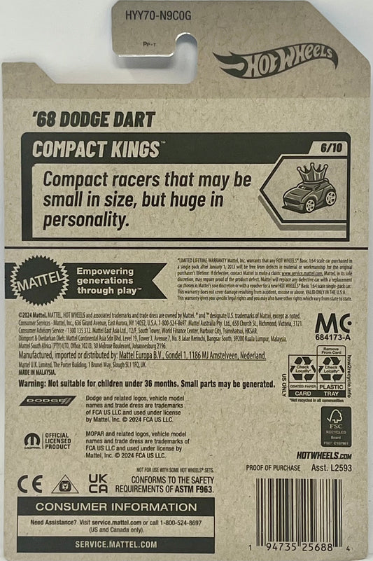 Hot Wheels '68 Dodge Dart Purple 128/250 Compact Kings 6/10