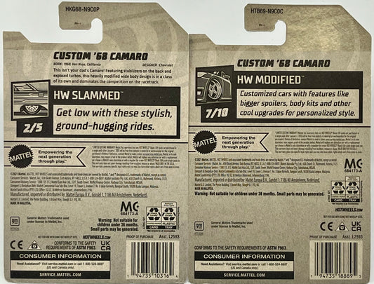 Two Hot Wheels - Custom '68 Camaro 2024 Red 2023 Blue HW Modified Slammed