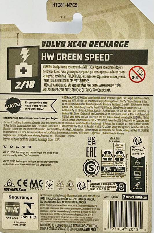 Hot Wheels Volvo XC40 Recharge White 14/250 HW Green Speed 2/10