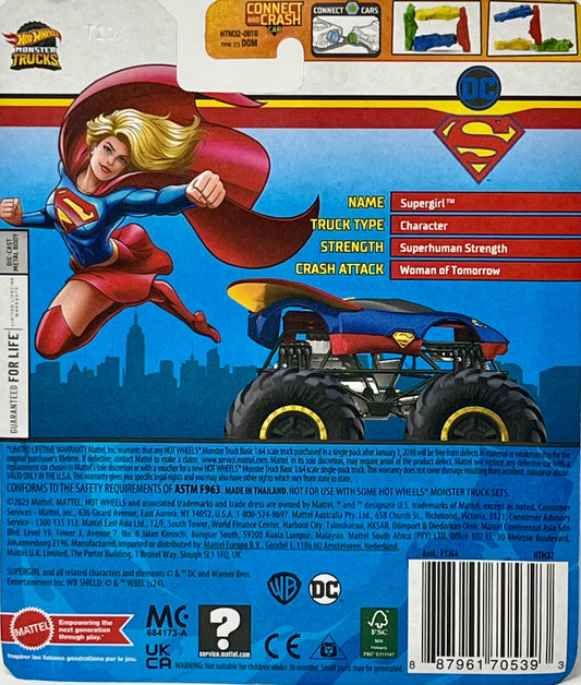 Hot Wheels Monster Trucks SUPER GIRL 1:64 Truck w Crushed Car
