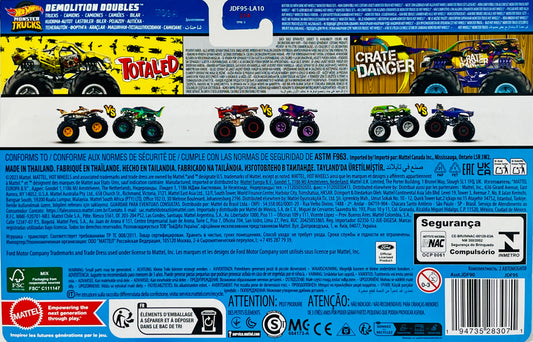 Hot Wheels Monster Trucks Totaled vs Crate Danger Demolition Doubles