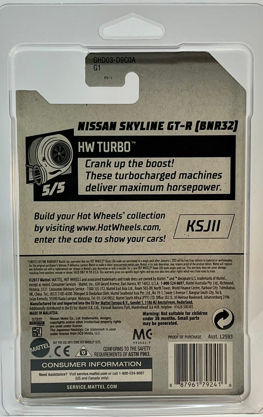 Hot Wheels Nissan Skyline GT-R (BNR32) [Gray] 2/250 Turbo 5/5 with Protector