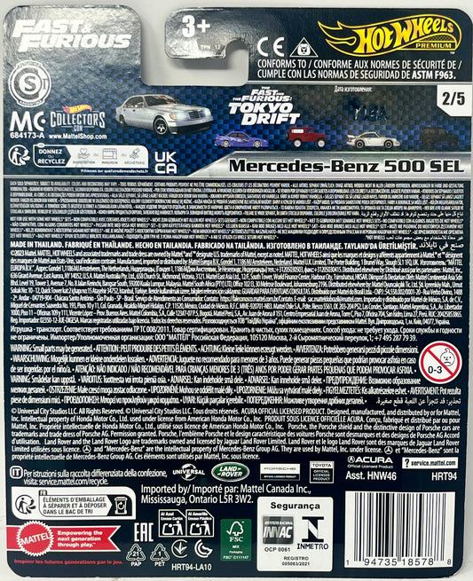Hot Wheels Cars, Premium Mercedes-Benz 500 SEL Fast & Furious 1:64 Scale Die-Cast Car for Collectors Inspired by Fast & Furious Movie Franchise