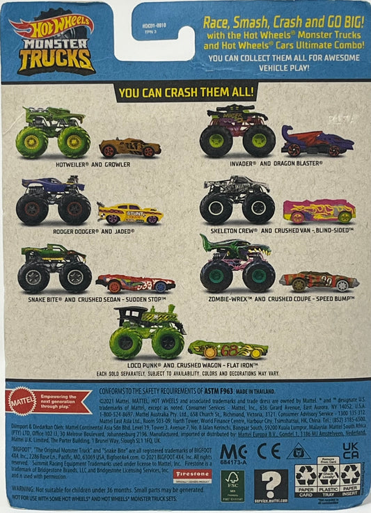 Hot Wheels Monster Trucks Skeleton Crew White Black & Crushed Car 1:64 Diecast