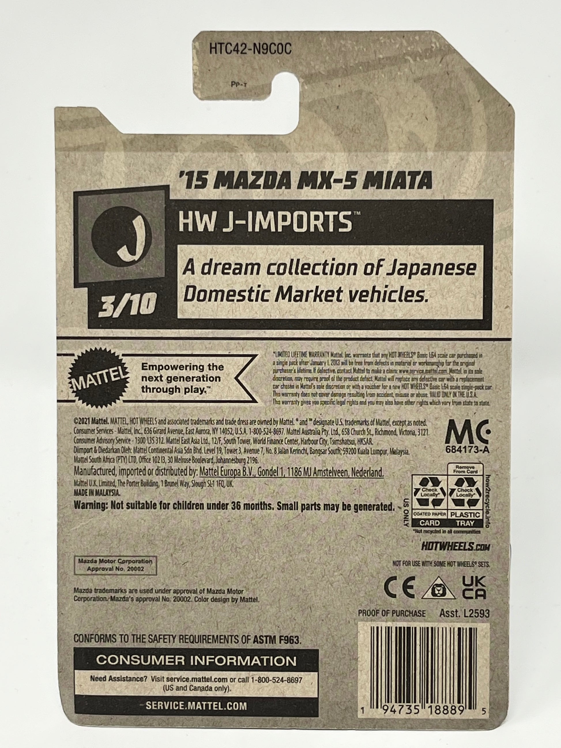 Hot Wheels ‘15 MAZDA MX-5 MIATA 3/10 J Imports 69/250 With Protector