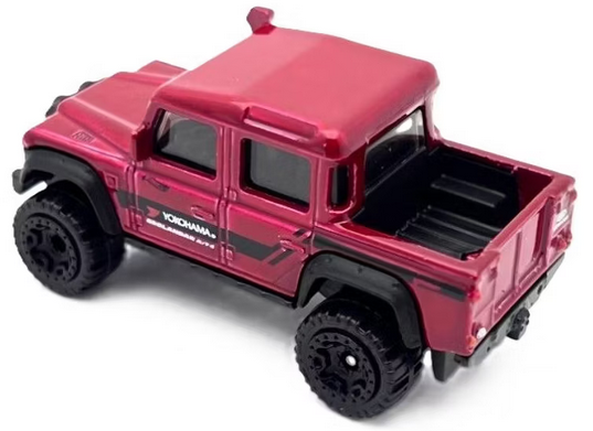 The 2025 Hot Wheels Mainline Case J '15 Land Rover Defender Double Cab in maroon color is a diecast toy vehicle in 1:64 scale. This car features the Land Rover Defender model from 2015 and is part of the Hot Wheels Hw Dirt series. It is suitable for ages 3 and up and is branded by Hot Wheels. The toy is designed for both boys and girls, making it a versatile and collectible addition to any toy car collection. Made in Malaysia, this Land Rover Defender is a must-have for car enthusiasts of all ages.