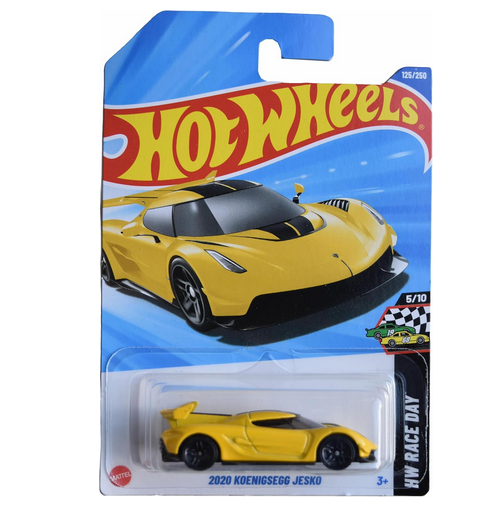Rev up your collection with the sleek and vibrant 2025 Hot Wheels Yellow 2020 Koenigsegg Jesko from the HW Race Day series. This 1:64 scale diecast model is a true reflection of its exotic car counterpart, boasting an eye-catching yellow color that's sure to stand out on any display or track. Crafted with meticulous attention to detail, this model features the iconic Koenigsegg Jesko design, custom otto, and is considered a limited edition collectible. Celebrate the fusion of speed and style with this remarkable piece, a must-have for both diecast enthusiasts and fans of the legendary Hot Wheels brand.