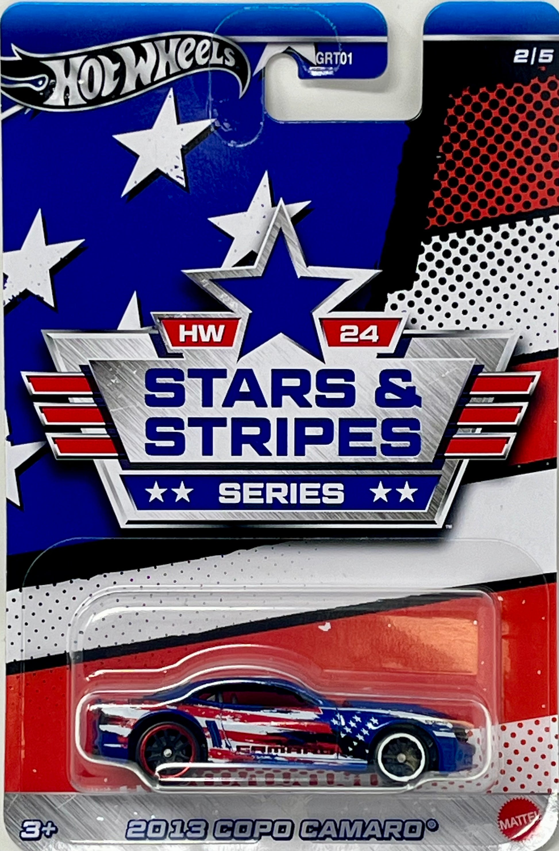 Hot Wheels 2024 Stars & Stripes series - 2013 Copo Camaro. Official licensed product. Number 2 of 5 in the 2024 Hot Wheels Stars & Stripes series. Nice 1/64 scale model of the Stars & Stripes 2013 Copo Camaro.